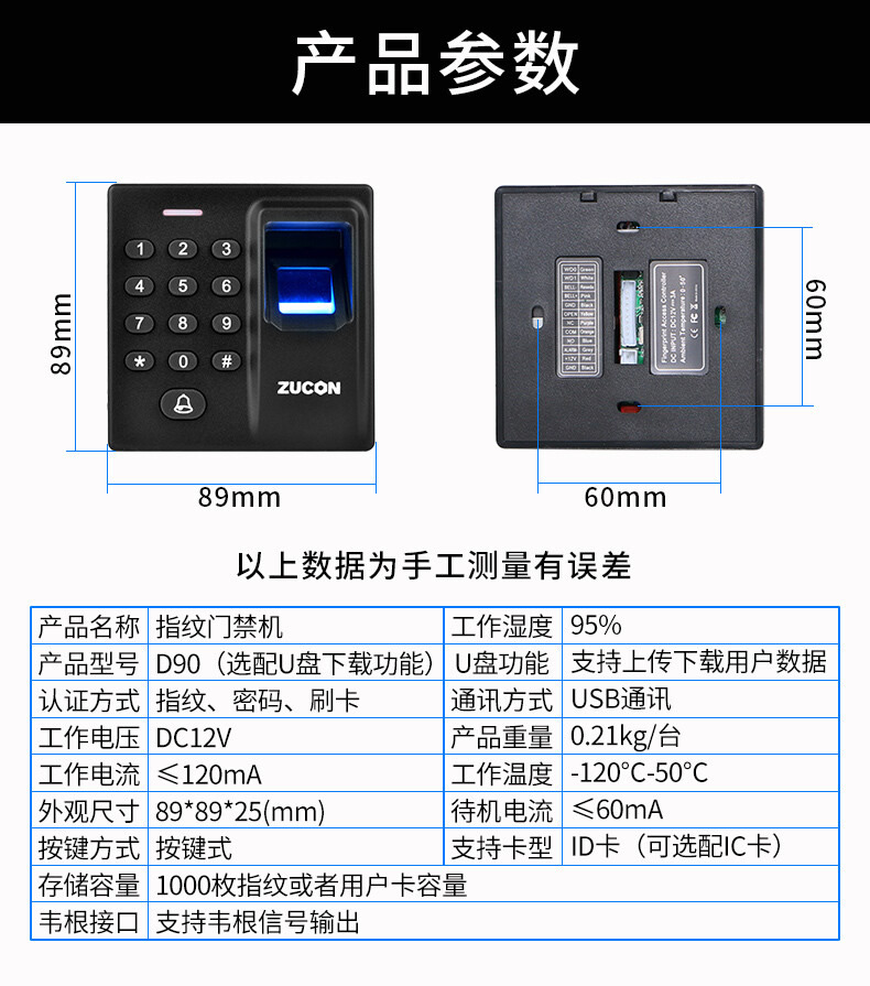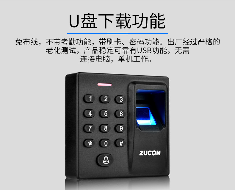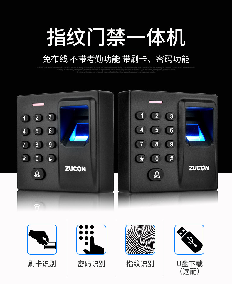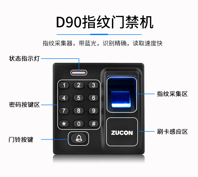 ZUCON祖程D90指紋門禁一體機 刷卡密碼門控主機控制器WG韋耕指紋讀頭