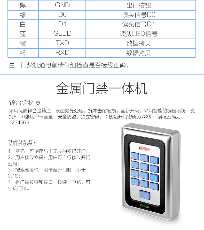 ZUCON祖程XC88金屬門禁機一體機XC88室外防水門禁ID、IC讀頭