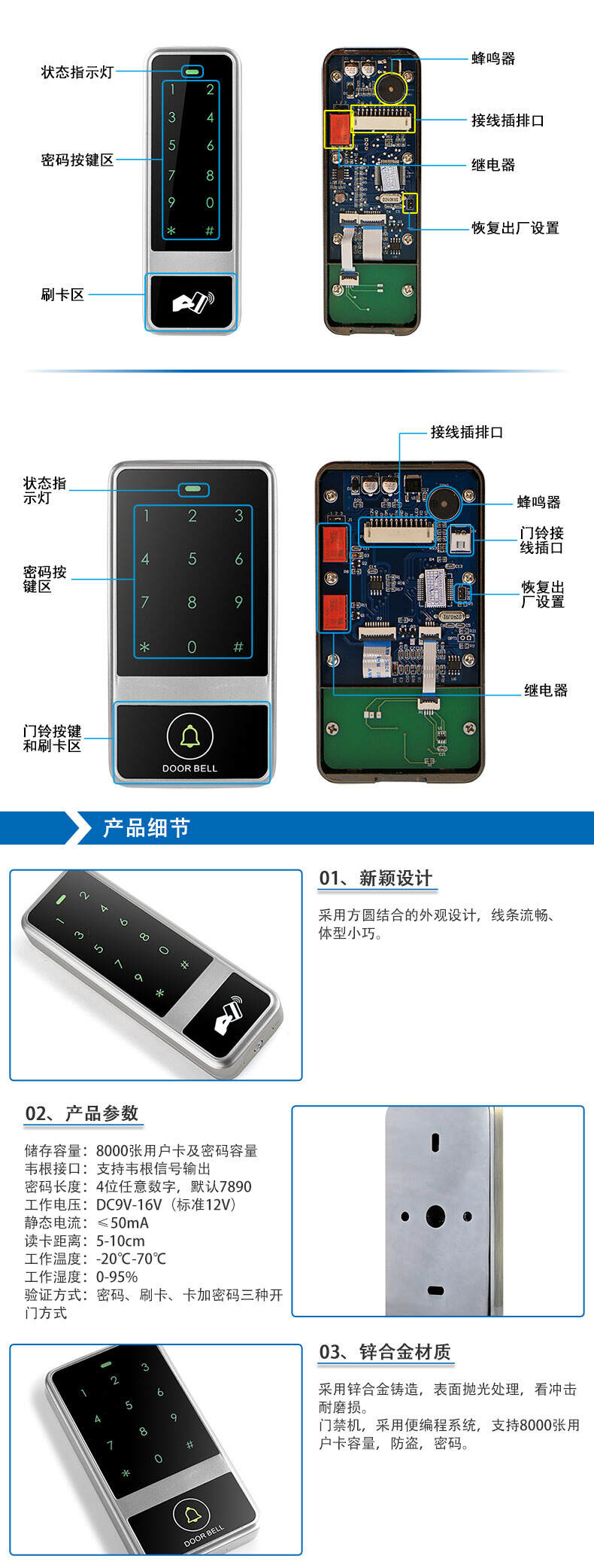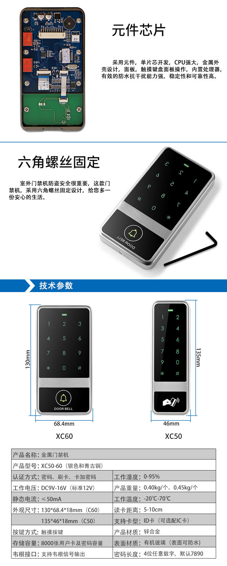 ZUCON祖程XC50 XC60 觸摸金屬門禁一體機(jī) 防砸室外防水防雨刷卡器