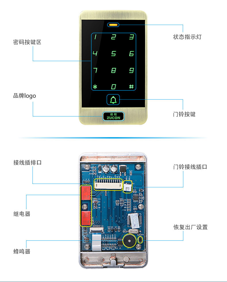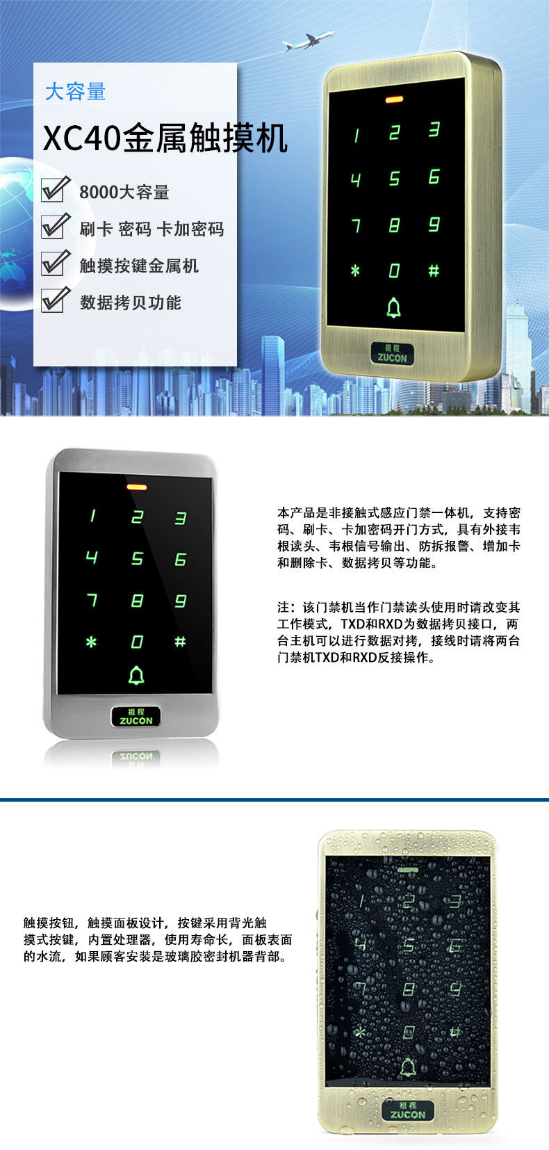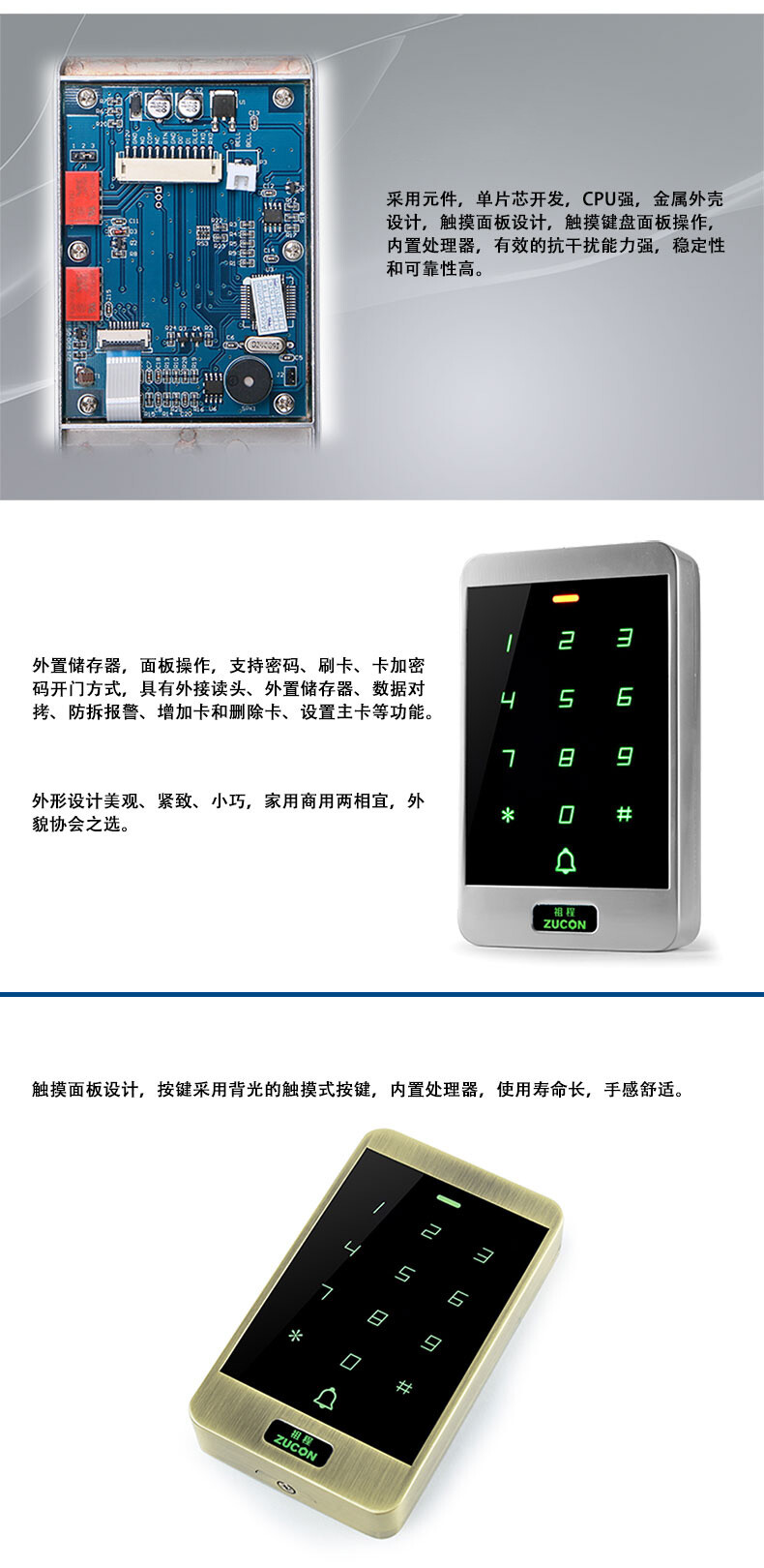 ZUCON祖程XC40門禁一體機小區門禁室外防水密碼刷卡門禁系統一體機