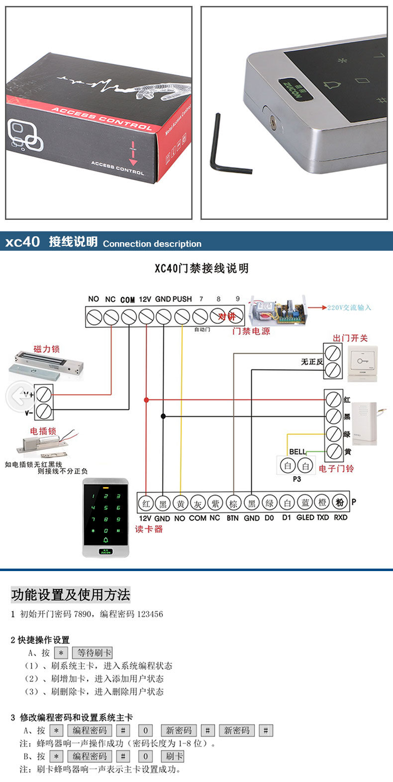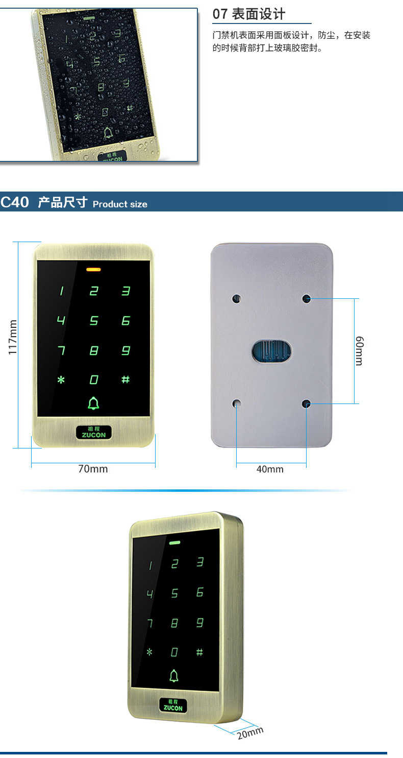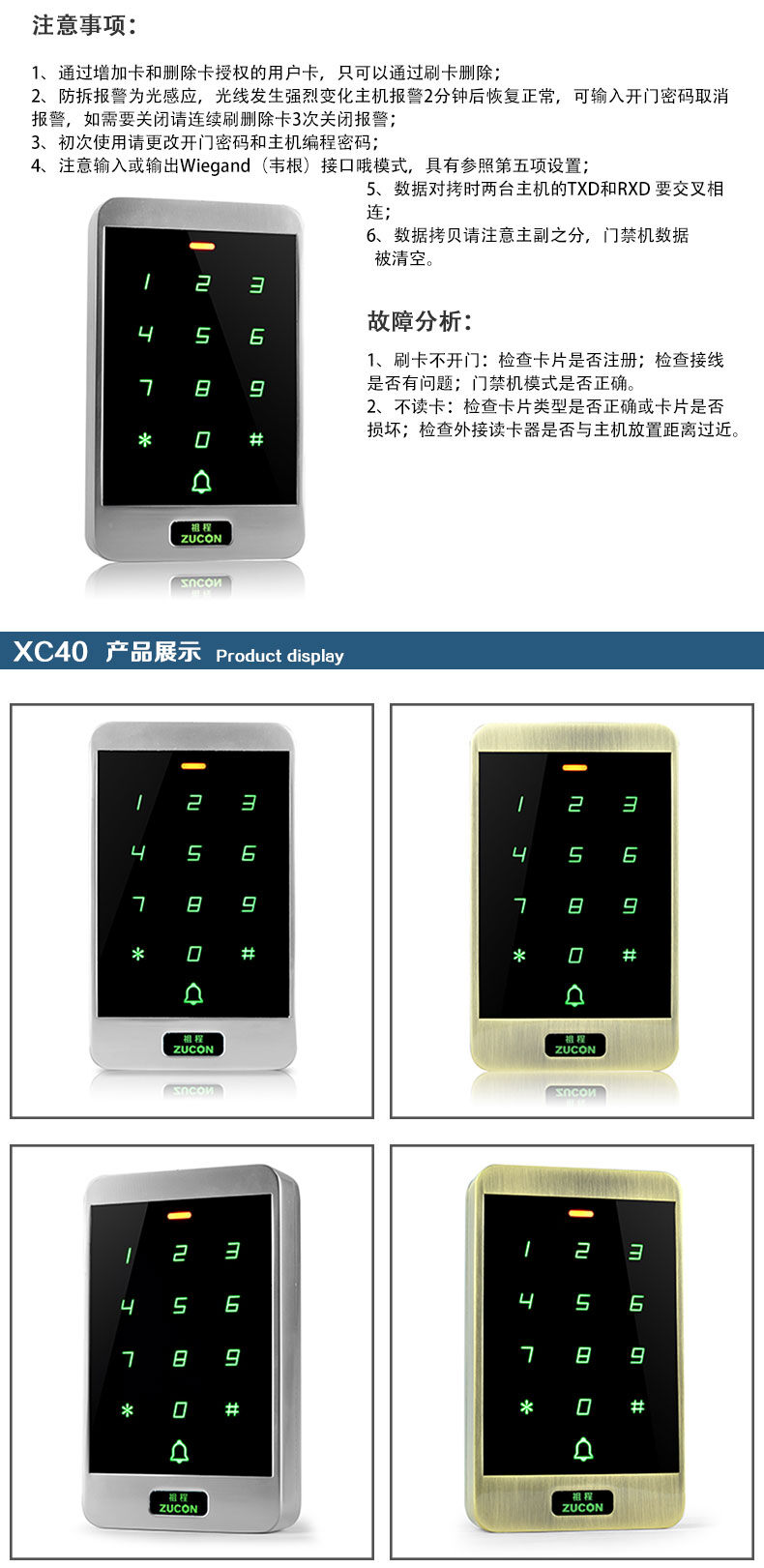 ZUCON祖程XC40門禁一體機小區門禁室外防水密碼刷卡門禁系統一體機