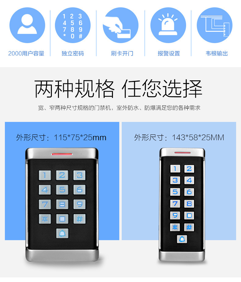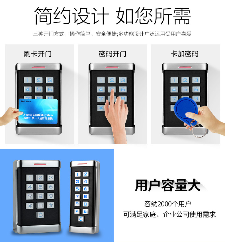 ZUCON祖程XC11 XC21金屬門禁一體機室外防水機防雨刷卡密碼一體機