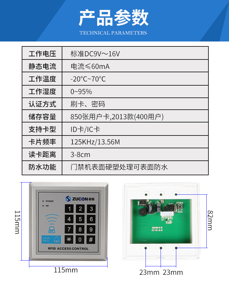 ZUCON祖程X1門禁一體機玻璃門門禁刷卡密碼門禁系統一體機電子門禁鎖