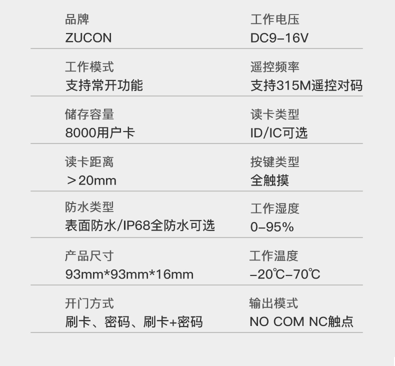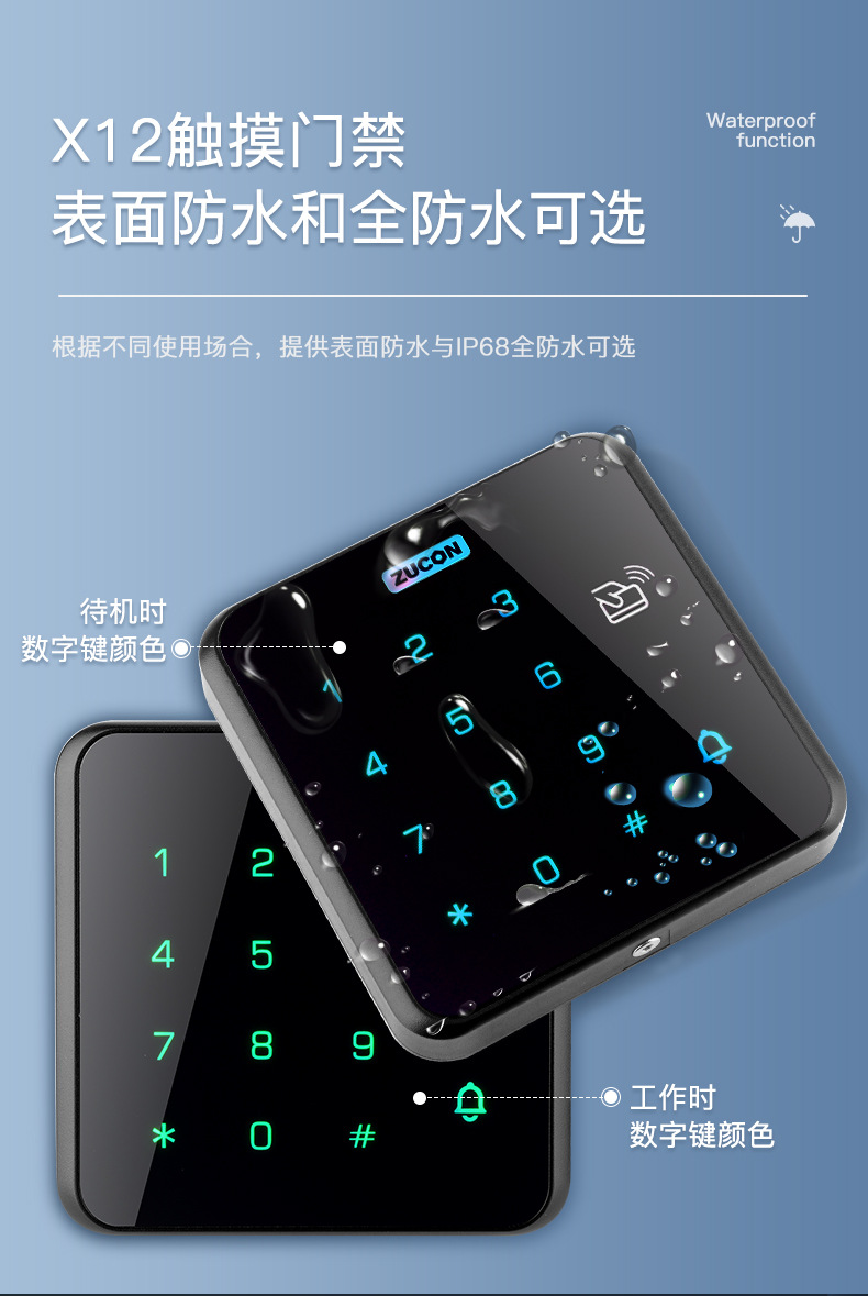 ZUCON祖程X12門禁一體機刷卡密碼門禁系統讀卡器門禁主機IDIC韋根讀頭