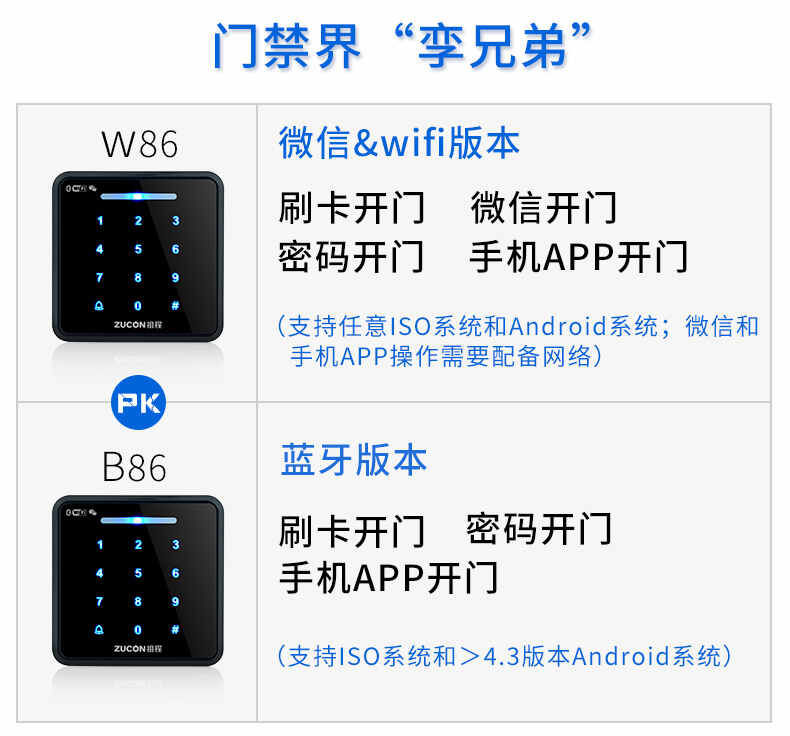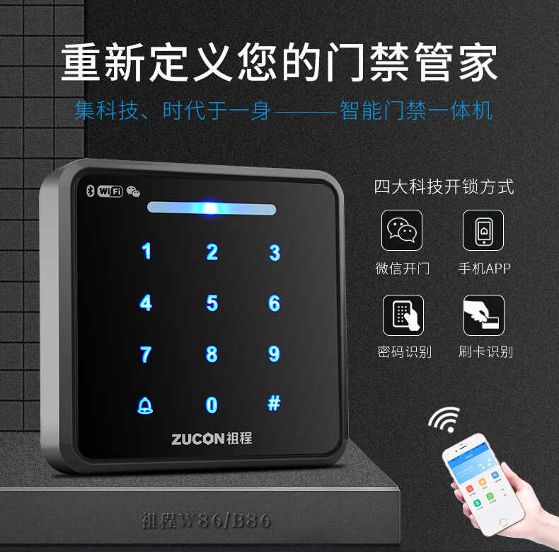 ZUCON祖程W86B86門禁一體機智能門禁手機APP刷卡密碼微信開門門禁機