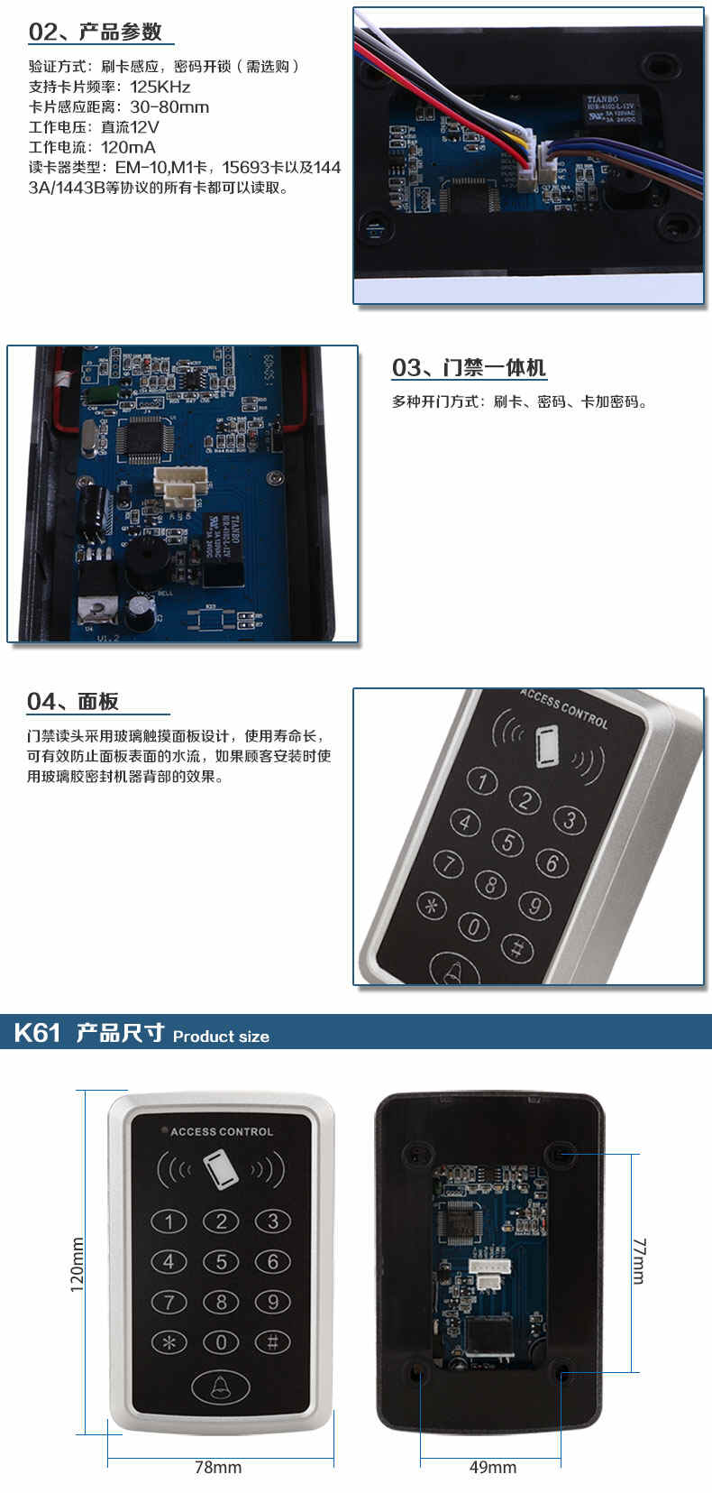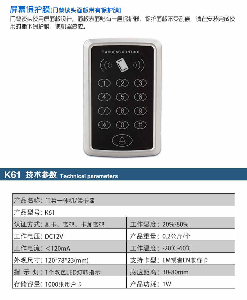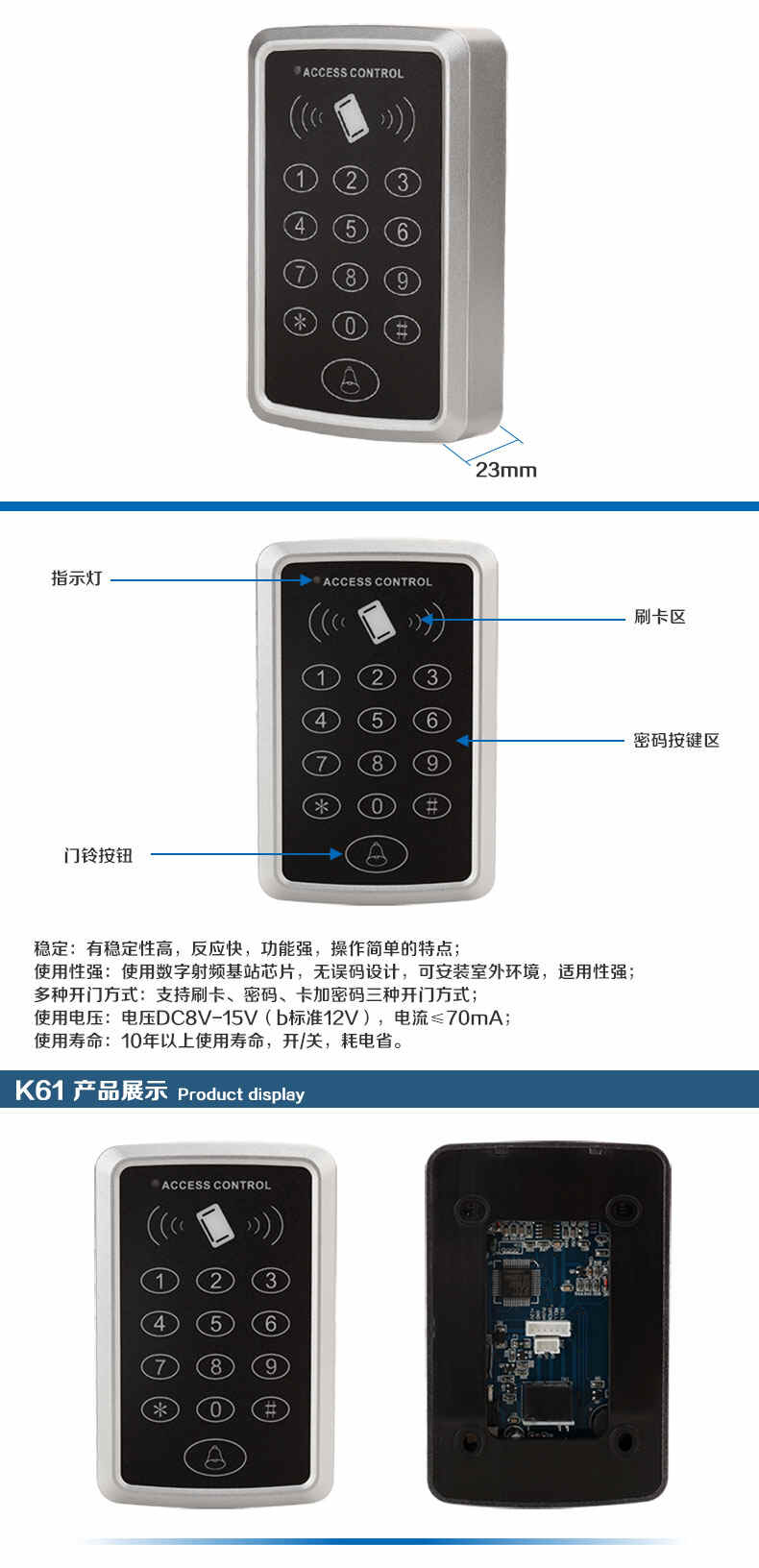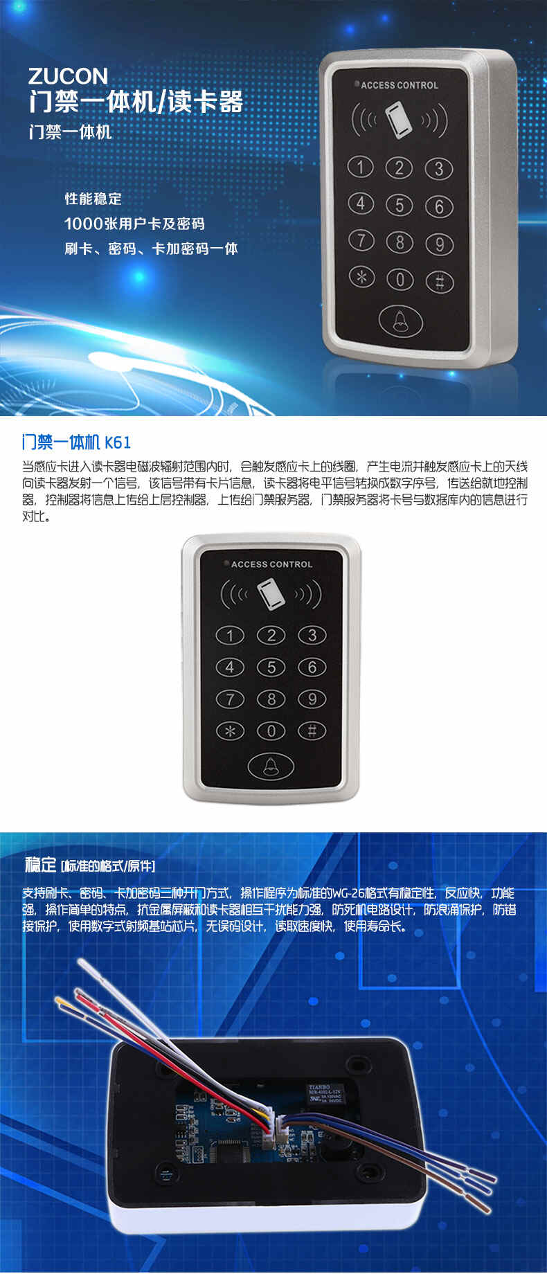 ZUCON祖程K61密碼刷卡門禁一體機(jī) ID刷卡一體機(jī) 門禁系統(tǒng)通用讀卡器