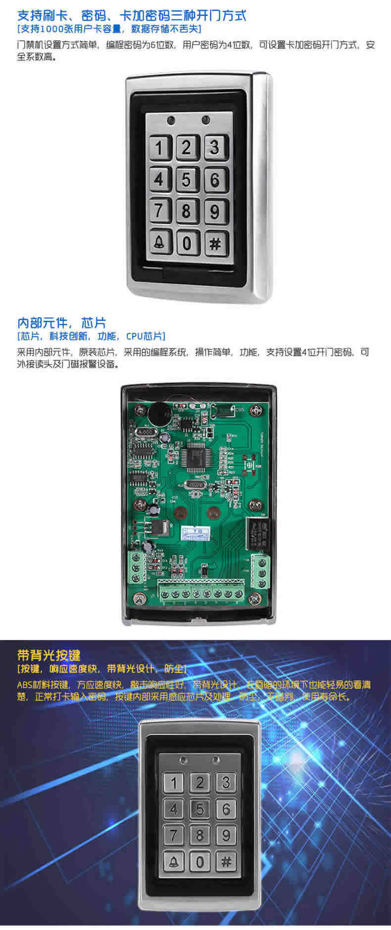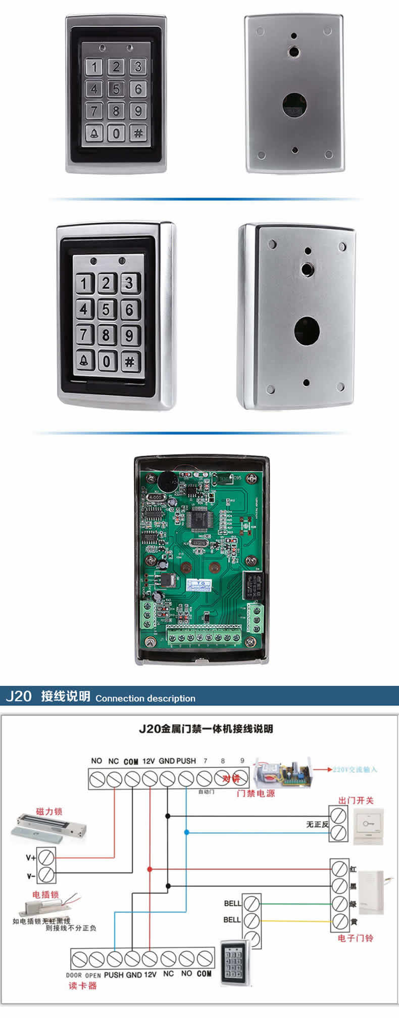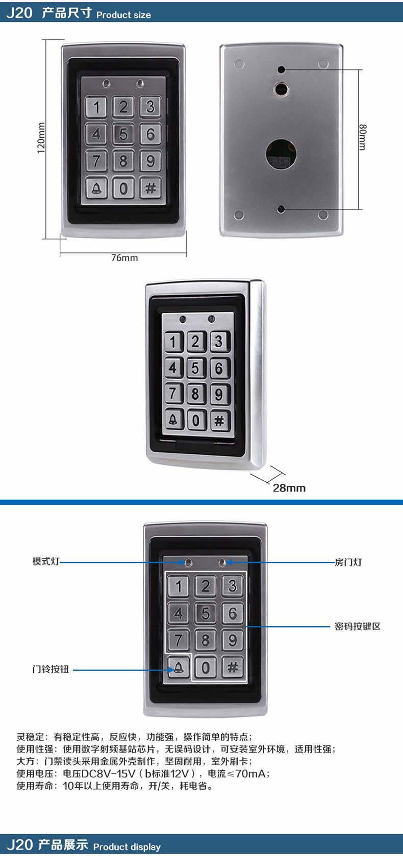 ZUCON祖程J20 金屬防水門禁機ID刷卡門禁一體機 金屬刷卡機 背光鍵盤