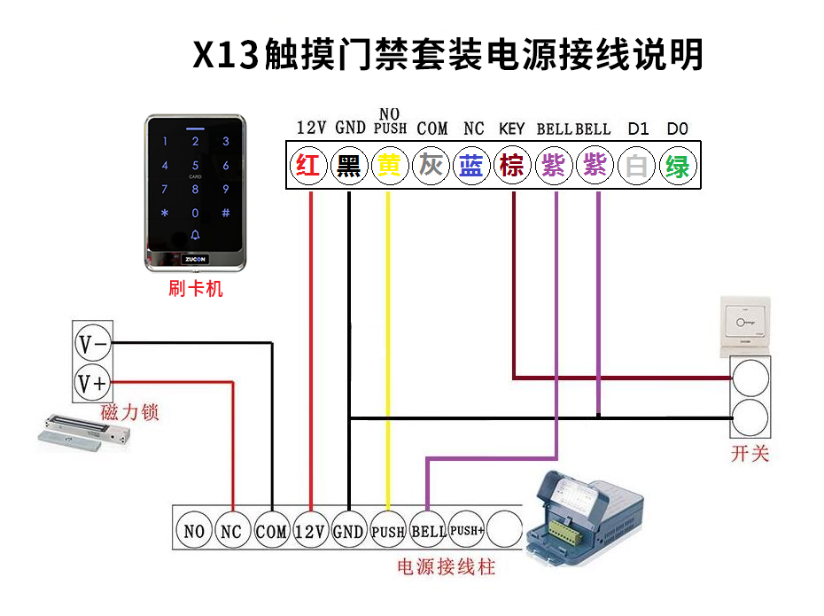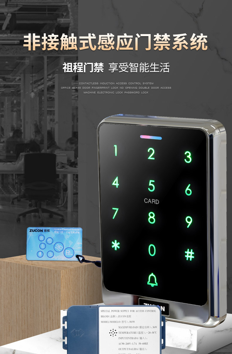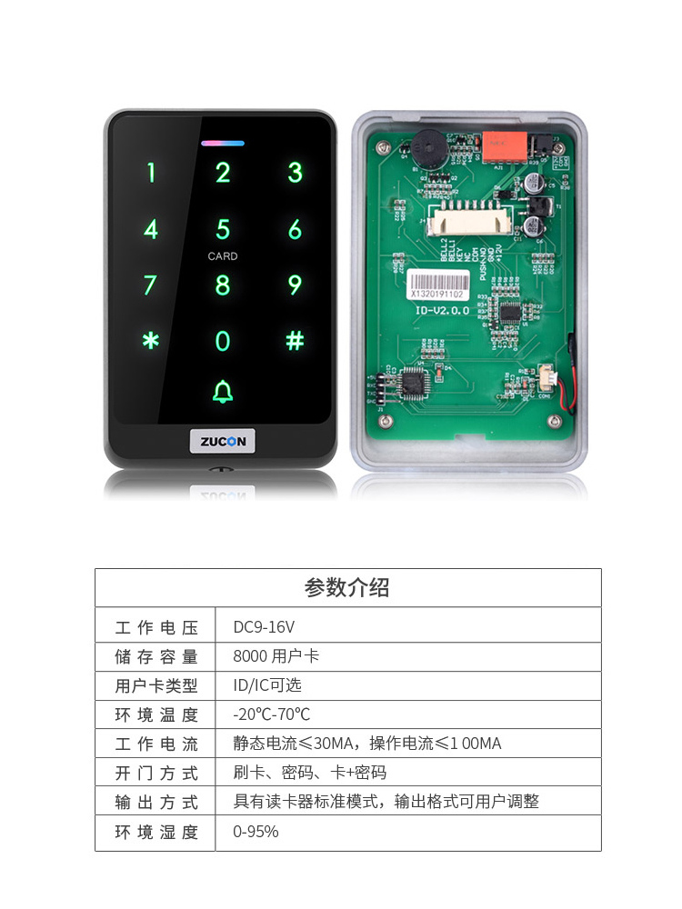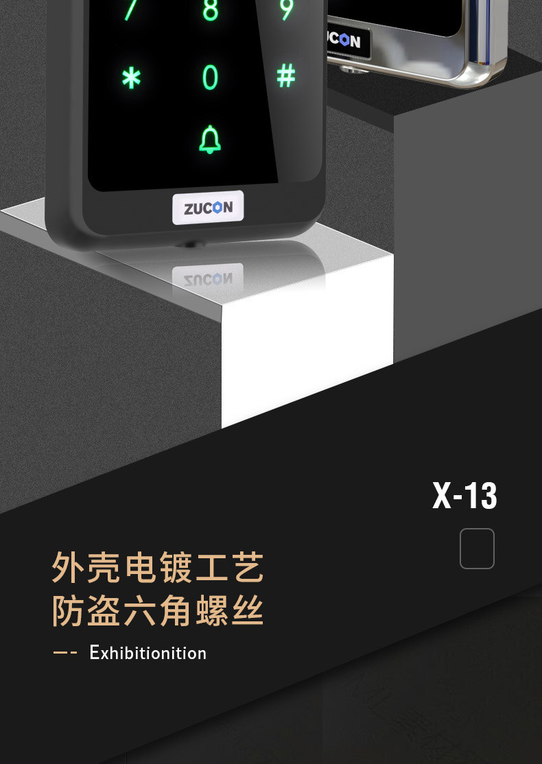 ZUCON祖程X13觸摸門禁系統(tǒng)ID選配IC刷卡電子密碼一體機配套磁力鎖電插鎖