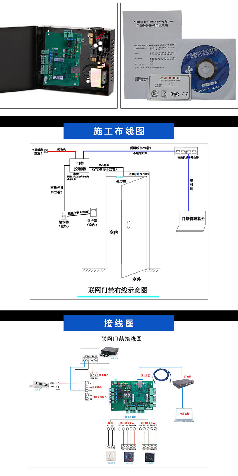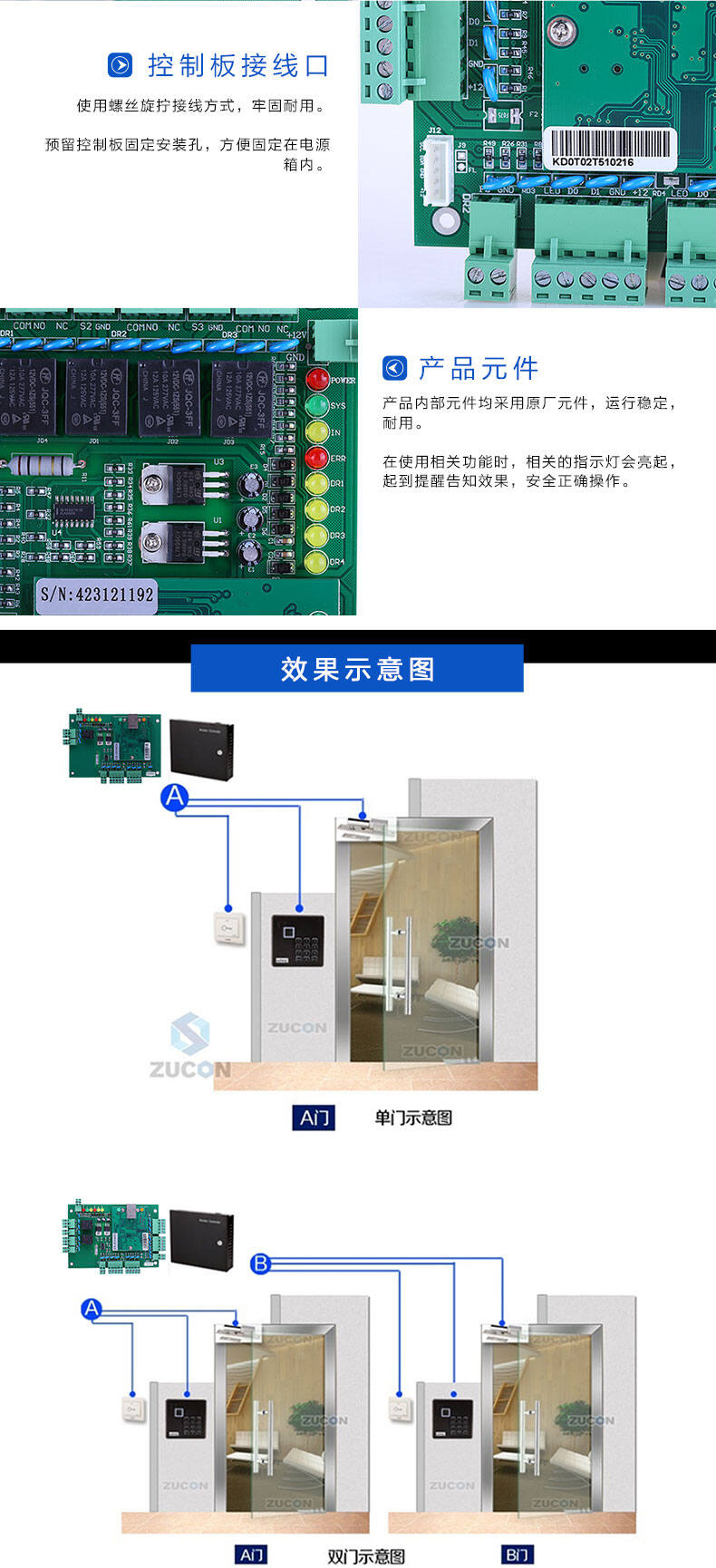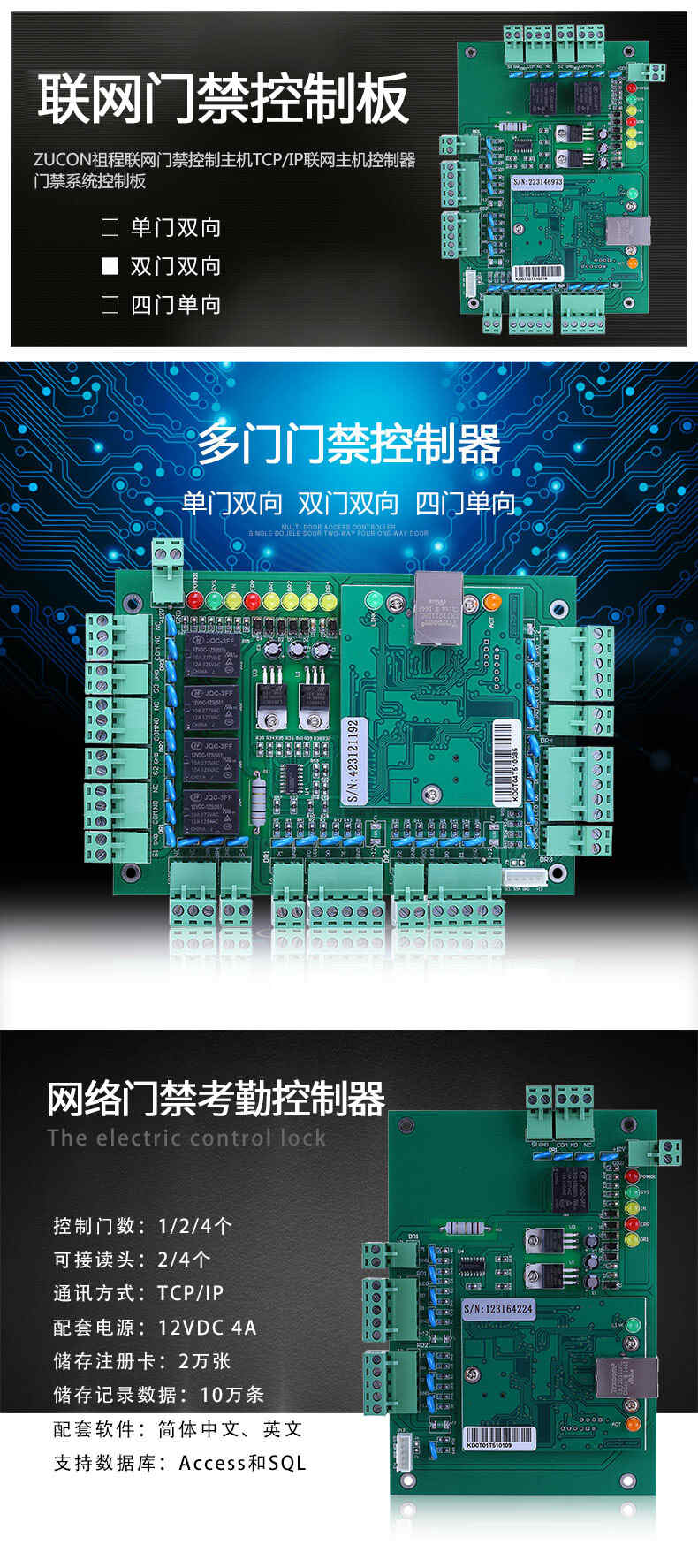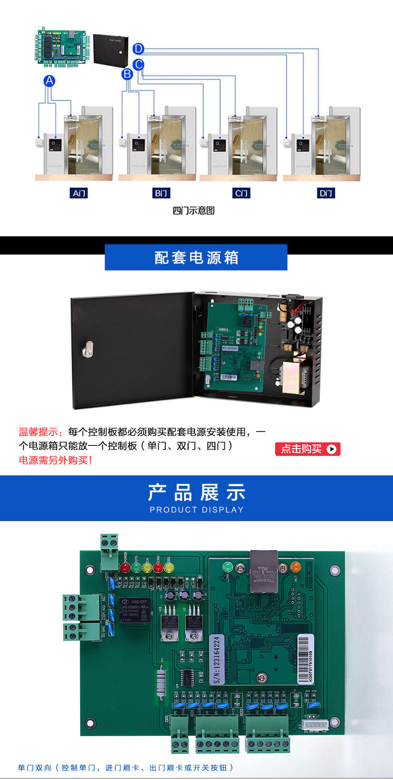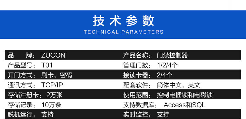 ZUCON祖程T系列聯網門禁控制器 門禁考勤主機 單門 雙門 四門 門禁多門控制器
